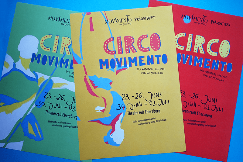 Im Rahmen meiner Abschlussarbeit an der Designschule München habe ich für das Artistical (Artistik + Musical) „Circo Movimento“ der Bewegungskünstegruppe Movimento ein Corporate Design entwickelt.