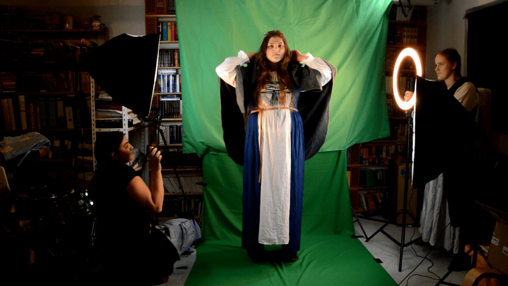 Aufgrund der Corona-Pandemie waren uns viele Grenzen gesetzt. So mussten wir in einem sehr kleinen Team arbeiten und auf eine Mischung aus Realaufnahmen, Aufnahmen im selbsteingerichteten Greenscreen-Studio, Photoshop-Collagen, After Effects-Animationen und in Blender erstellten 3D-Modellen zurückgreifen.