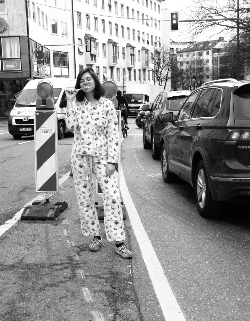 Ziel unserer Fotostrecke war es, private Situationen ohne Scham an die Öffentlichkeit zu bringen. Denn Zuhause ist das Gefühl, man selbst sein zu können ohne sich beobachtet zu fühlen. Dies lässt sich nicht über Räumlichkeiten und Gegenstände definieren. Vor allem Vorgänge, die man im Bad tätigt, wie zum Beispiel Zähne putzen, Rasieren und kosmetische Pflege, sind meist persönlicher Art. Aber auch beim Schlafen wird man ungern beobachtet. Das Gefühl von Zuhause findet nicht nur im Bad statt: Emotionale Ausbrüche beim Zocken hält man ebenfalls meist lieber von der Öffentlichkeit fern.